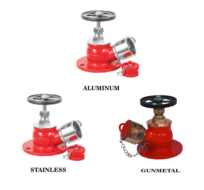 Outlet valve for hydrant firefighting systems.